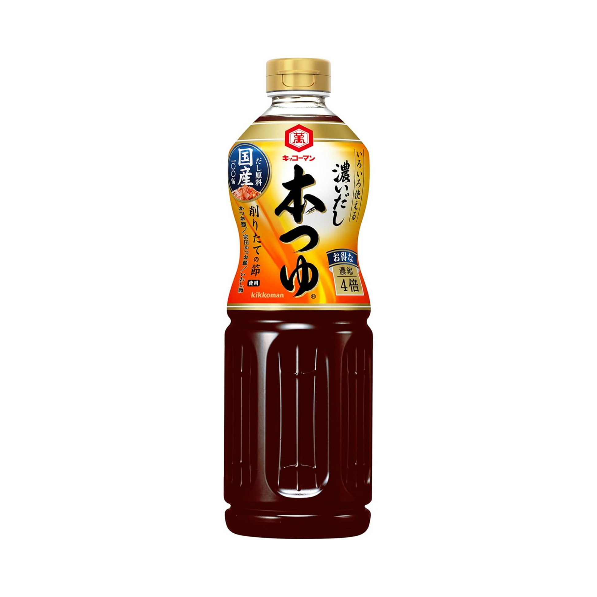 Dieses 4-fach konzentrierte Suppenkonzentrat kombiniert zu 100 % in Japan hergestellten Dashi – aus Bonito, Sōda-Bonito, Sardine, Thunfischflocken und Kombu – mit gereifter, zuckerhaltiger Sojasauce.