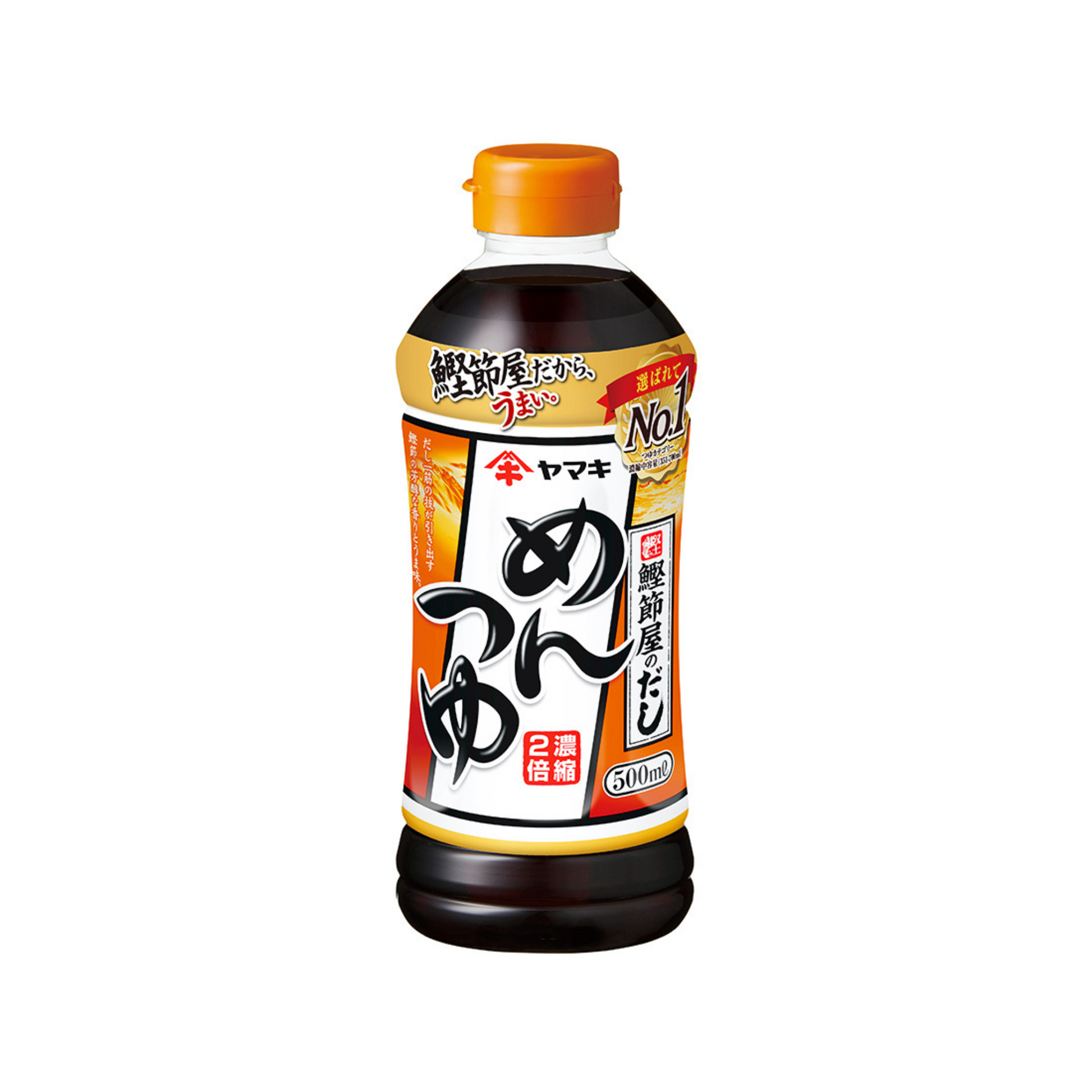 Zweifach konzentrierte Nudelsuppen-Basis von Yamaki, hergestellt mit geräucherten Bonitoflocken für reiches Aroma und Umami. Vielseitig einsetzbar für kalte oder warme Nudeln, Eintöpfe und Schmorgerichte.