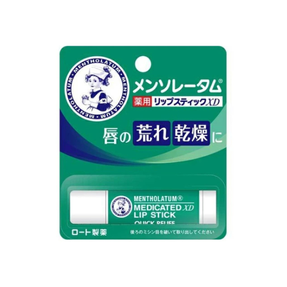 The Rohto Mentholatum Medicinal Lipstick XD 4 g is a high‑performance lip care quasi‑drug that shields the surface of your lips from wind and cold while preventing roughness, dryness and chapping. Featuring menthol and camphor for a refreshing sensation, it’s ideal for outdoor winter activities or under mask use.